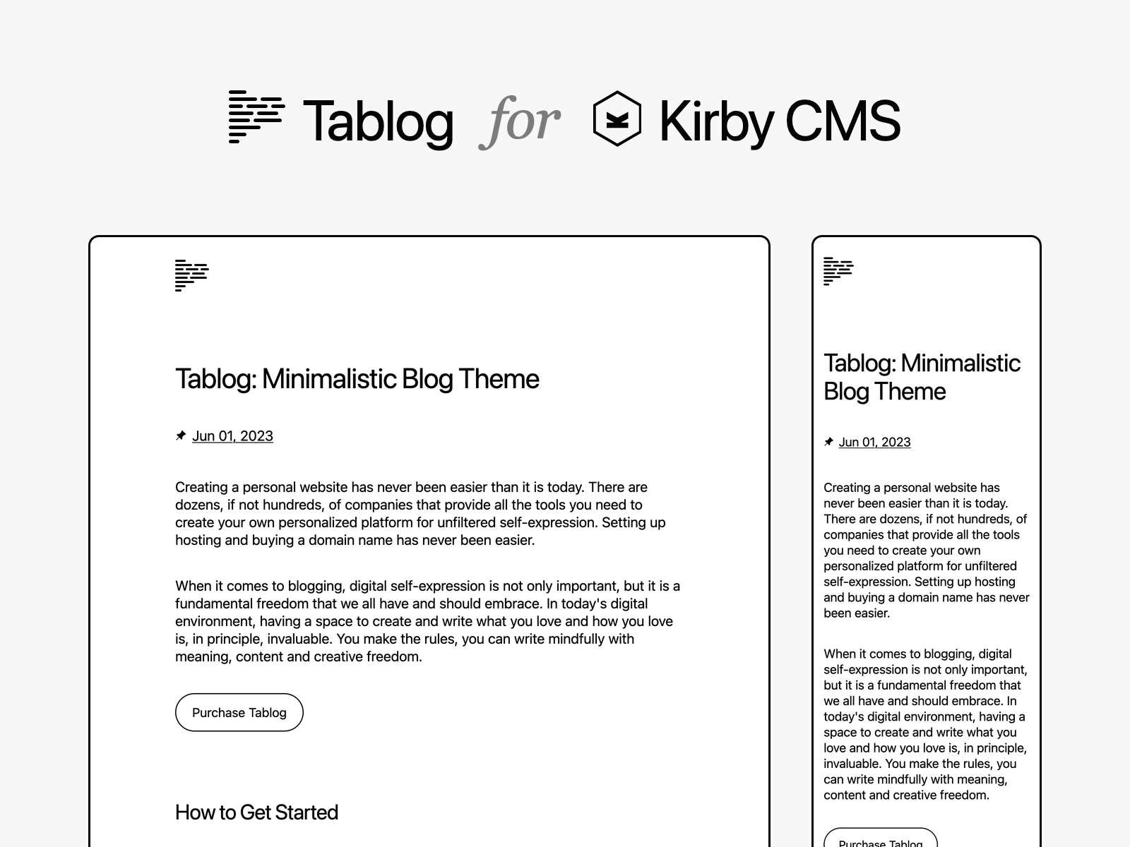 Tablog is a minimalistic blog theme for Kirby CMS version.